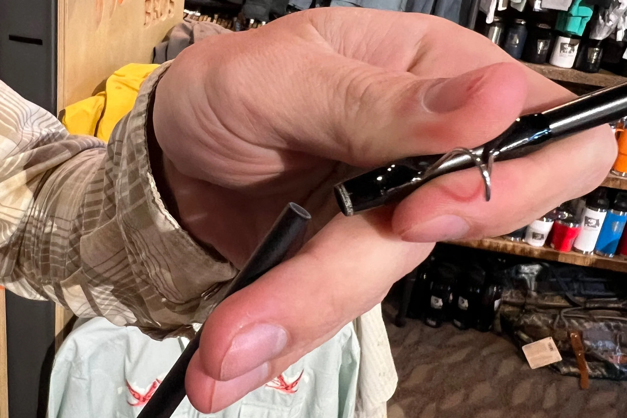 Next up, let's attach all the sections. Start with the tip section, and work your way down to the butt section. Starting with the tip section means you won't have to put the rod down on the ground, avoiding any unfortunate accidents (like your buddy stepping on it—ouch!).